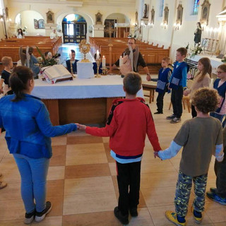 Templomunkban 2019. október 17-én egész napos szentségimádást tartottak bekapcsolódva a néhány éve újjáéledt Egyházmegyei Örökimádásba. Iskolánk minden osztálya egymást felváltva látogatta meg az Oltáriszentséget. Jézus velünk maradt az Eucharisztiában és mi elmentünk Hozzá, köszöntöttük Őt, találkoztunk Vele, imádkoztunk Hozzá gondolatainkkal, szavainkkal, dalainkkal, szívünkkel. S a csendben csak néztük Őt, és Ő nézett minket. Hiszen ez a szentségimádás: találkozás, együttlét Istennel. Ezt követően a szegénység elleni küzdelem világnapja alkalmából a plébániára vittük a gyerekek által gyűjtött tartós élelmiszereket, melyet a mórahalmi Karitász fog eljuttatni a rászorulóknak. Ezúton is köszönjük a felajánlásokat!