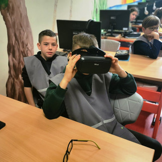 A Digitális Témahéten a felső tagozatos diákok előbb a robottechnológiáról és a mesterséges intelligenciáról hallgattak meg egy érdekes előadást, majd kipróbálhatták egy programozott robot irányítását, a virtuális valóságban a dinók földjére látogathattak a VR szemüveg segítségével, megcsodálhatták a házilag készített holografikus megjelenítőt, a bátrabbak pedig még robotharcra is vállalkozhattak.